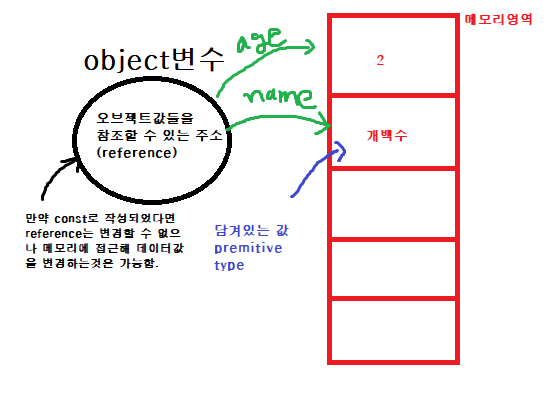object를 변수에 할당하면 변수는 단지 reference주소만 가지고 있고