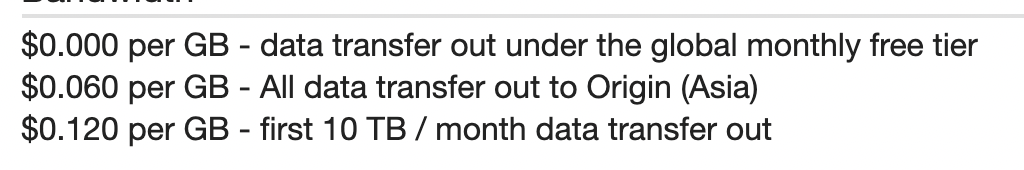 초과시 10테라바이트까지는 기가바이트당 0.120달러의 비용을 지불하게 된다...