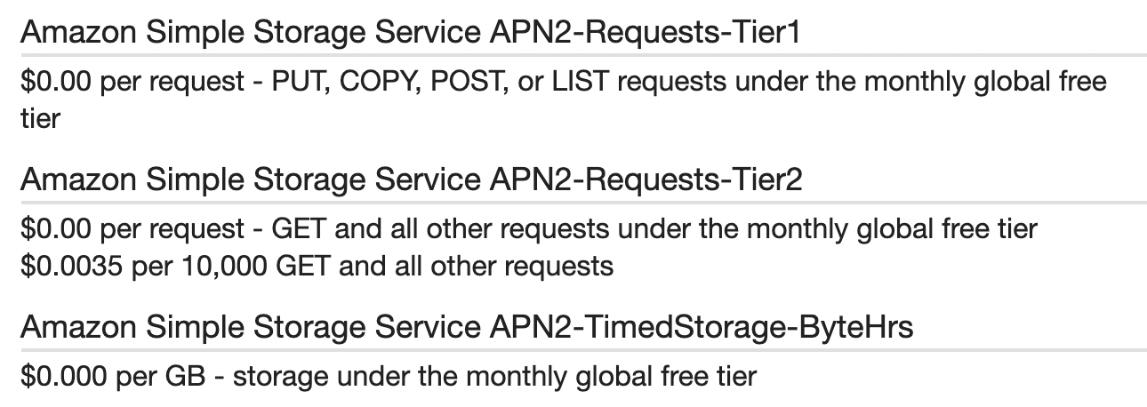 겟요청의 경우 20,000번의 요청 이후에는 10000요청당 0.0035달러가 과금되고