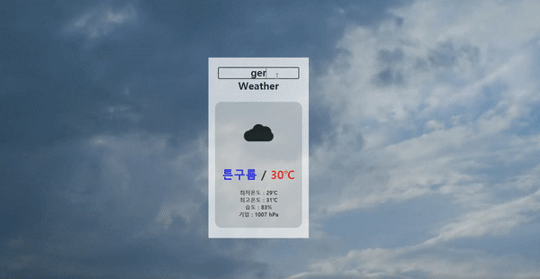 weather api와 지역 이름으로 좌표를 검색할 수 있는 api를 섞어서 만들어보았다